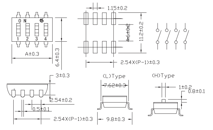 撥碼開關包裝方式:所有開關推鈕在包裝時都設置在" OFF“的位置。
