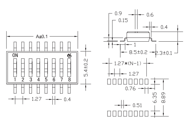 撥碼開關(guān)包裝方式:所有開關(guān)推鈕在包裝時(shí)都設(shè)置在" OFF“的位置。